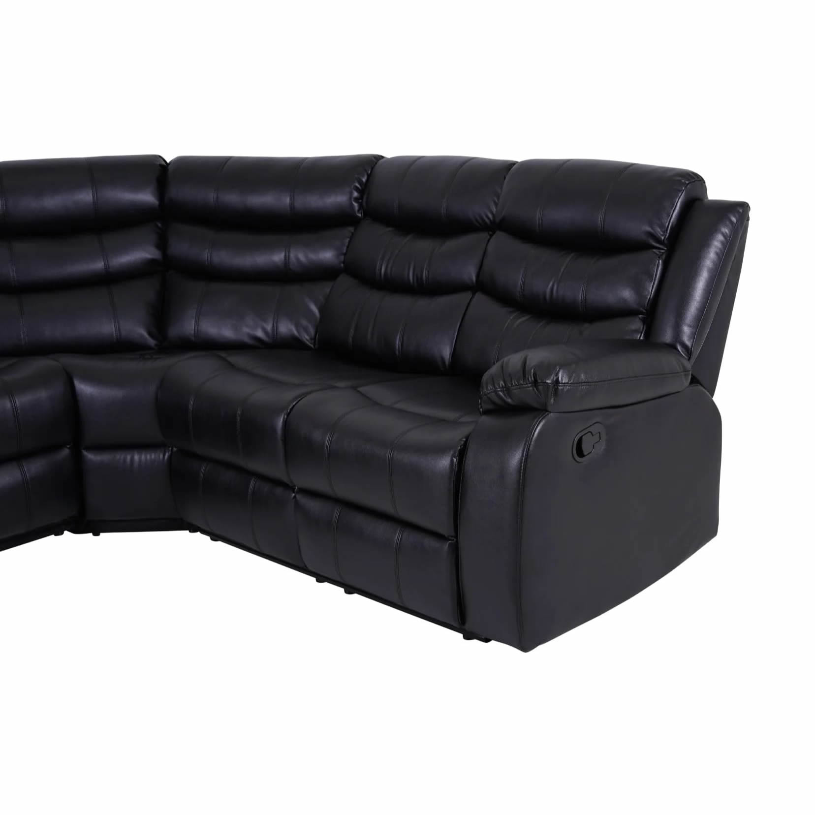 Roma Leather Recliner Corner Sofa in Black