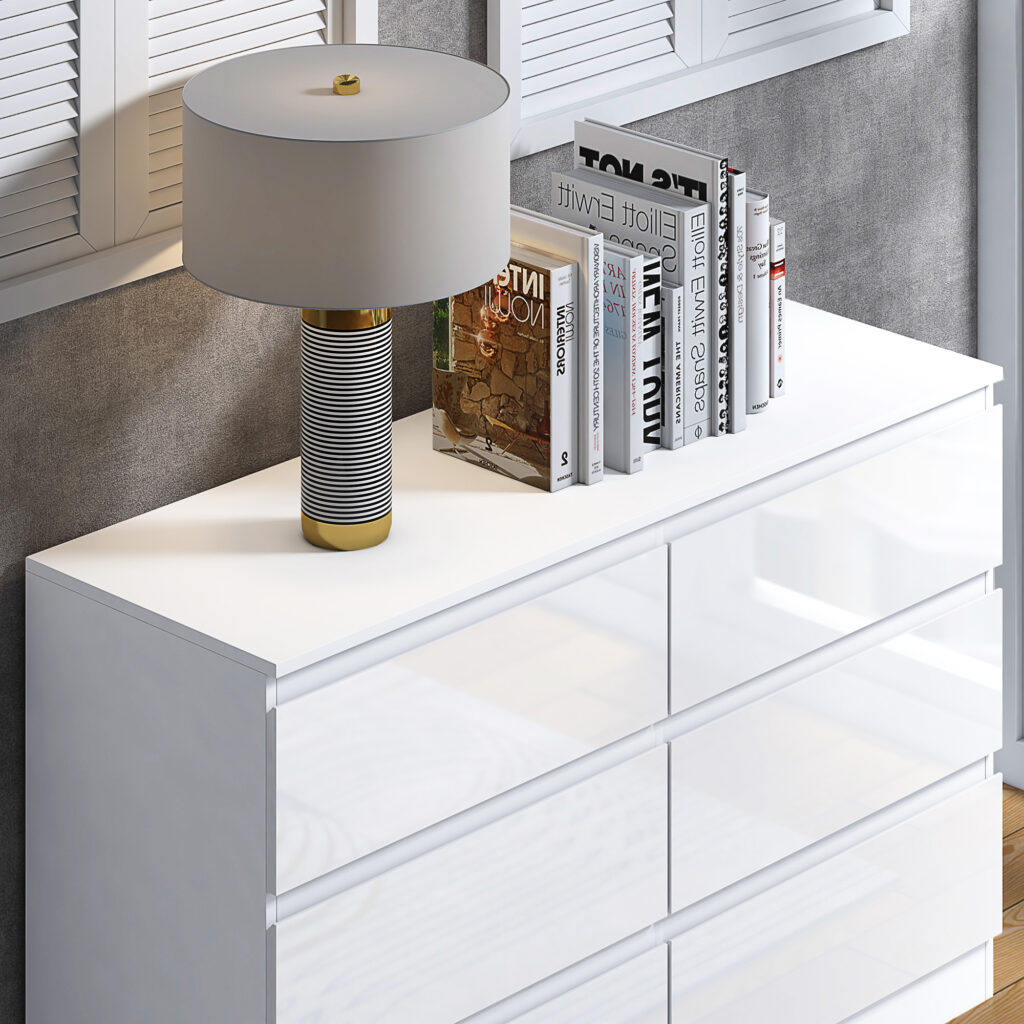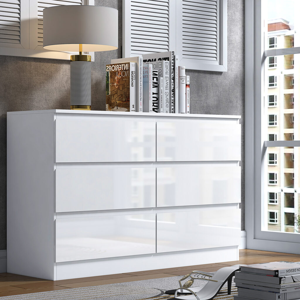 Carlton 6 Drawer Cabinet in Gloss White