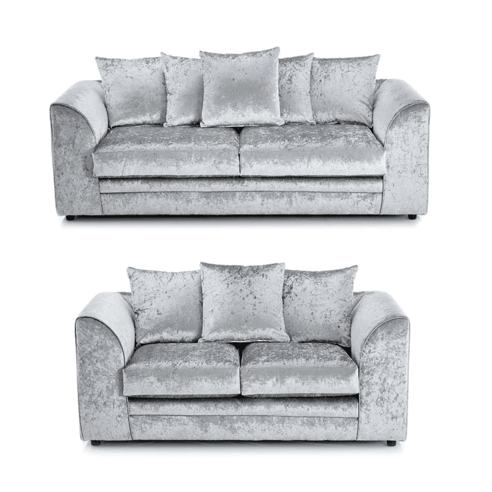 Dylan Crushed Velvet Fabric Sofa in Silver