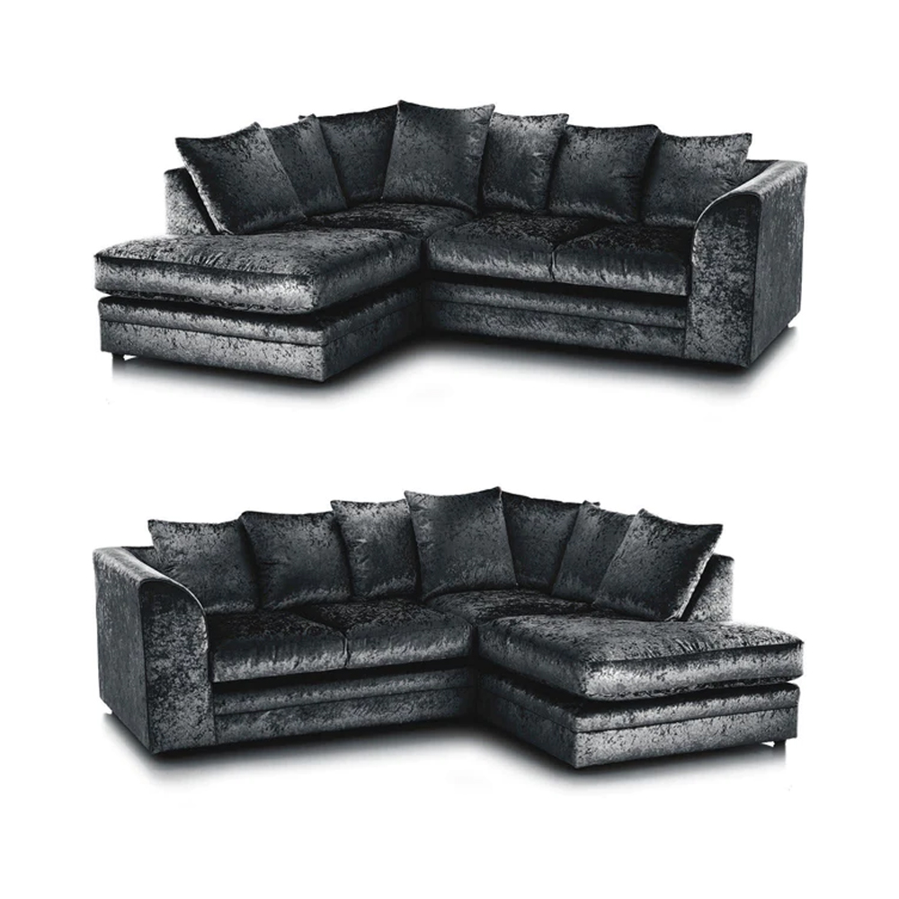 Dylan Crushed Velvet 4 Seater Fabric Corner Sofa in Black