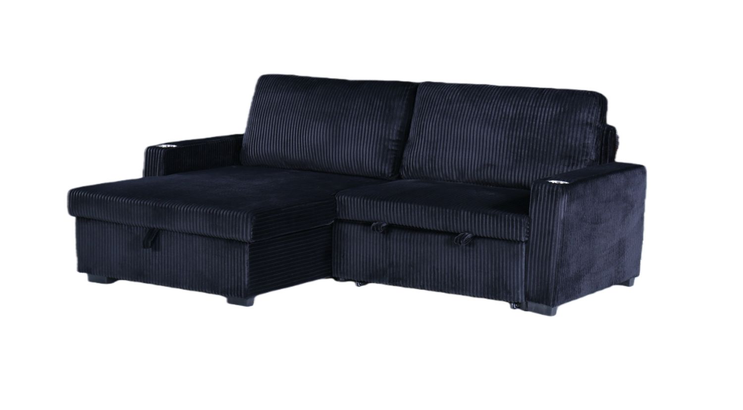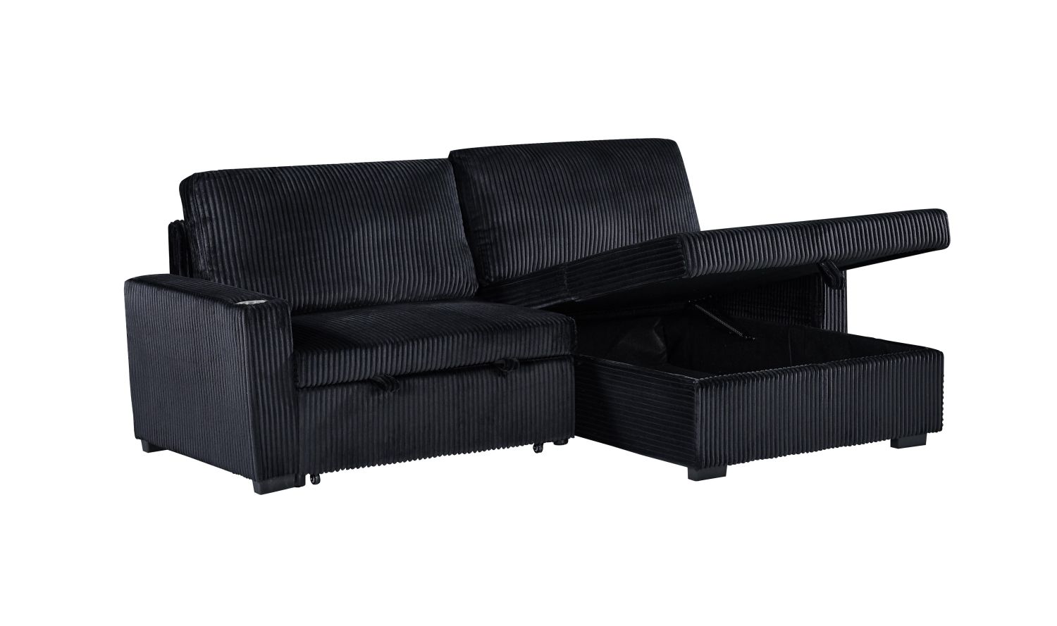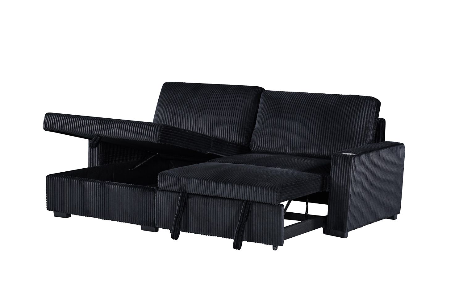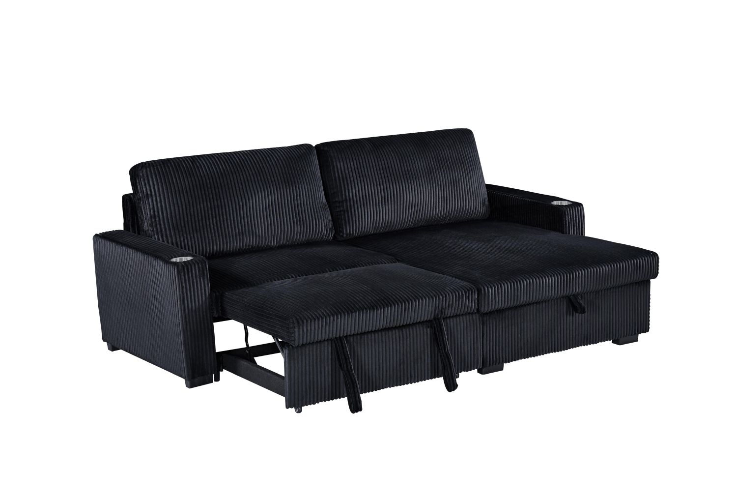 Florence Jumbo Cord L-Shape Sofa with Storage Chaise, Pullout Footrest and Built-in Cupholders