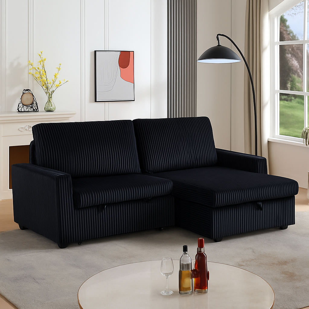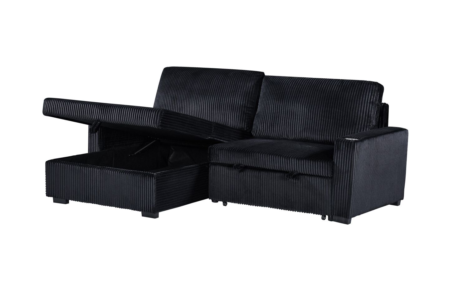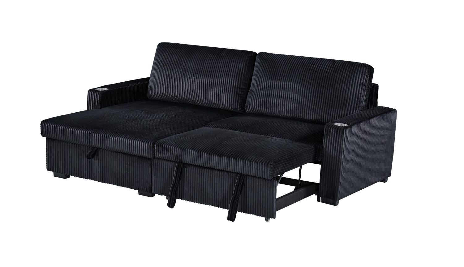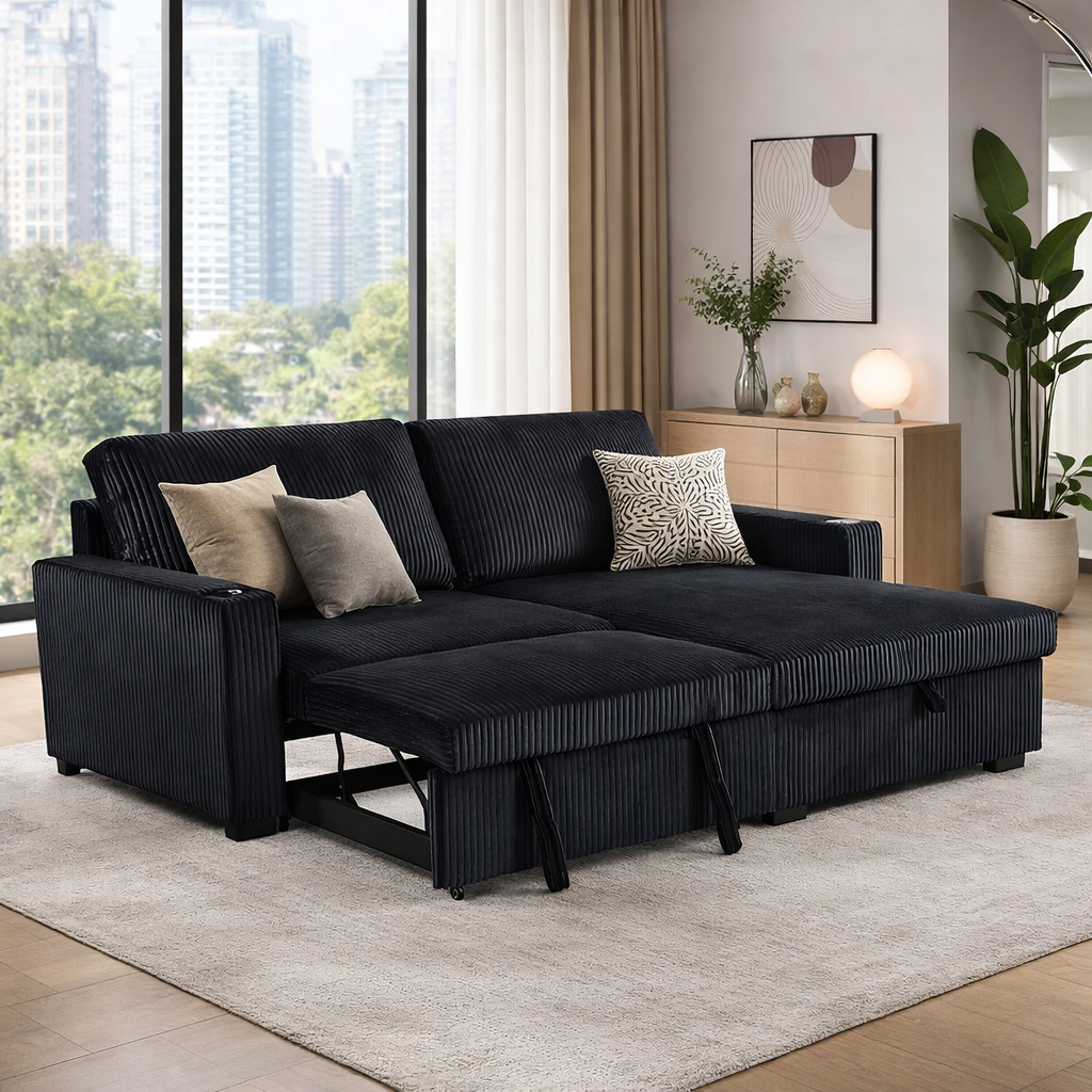 Florence Jumbo Cord L-Shape Sofa with Storage Chaise, Pullout Footrest and Built-in Cupholders