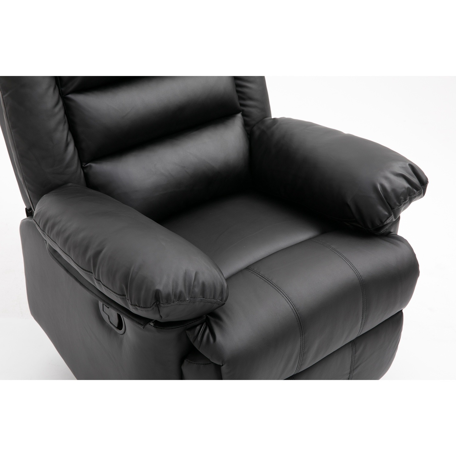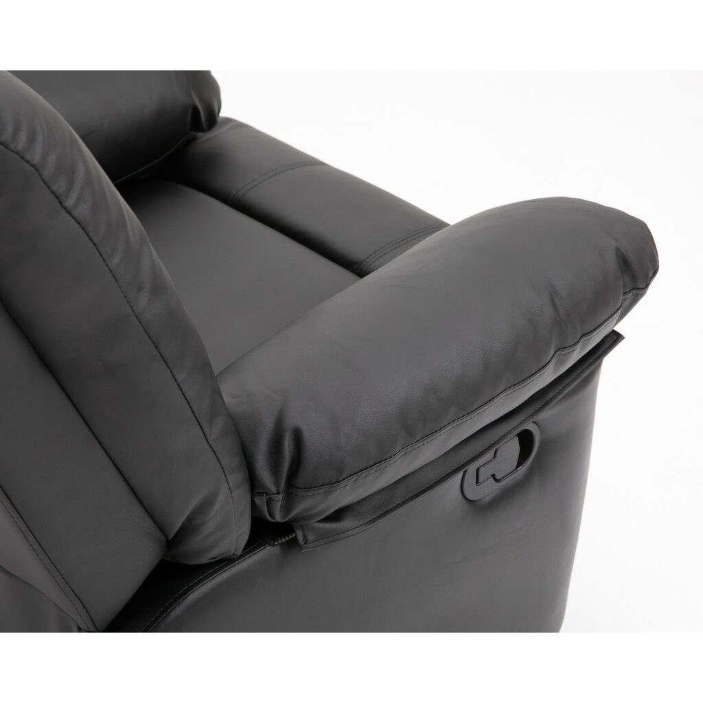 A simple pull on the latch and you can recline in this classy armchair. It reclines to a relaxing position. Once you sit back and relax, you will be supported by soft padding and superior lumbar support.