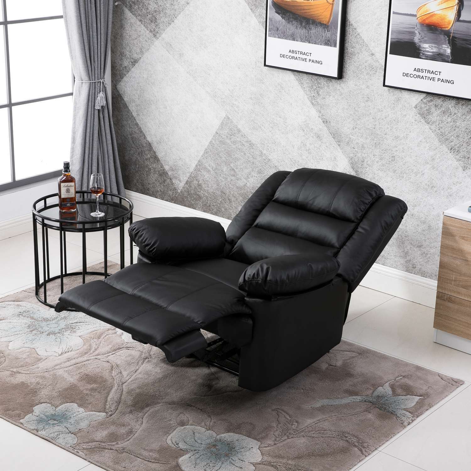 This recliner armchair is covered in luxurious bonded leather with foam fillings to provide excessive relaxation after a hard day out. The aesthetics will create desire to just sit, chill and melt those aching muscles loose for the evening.