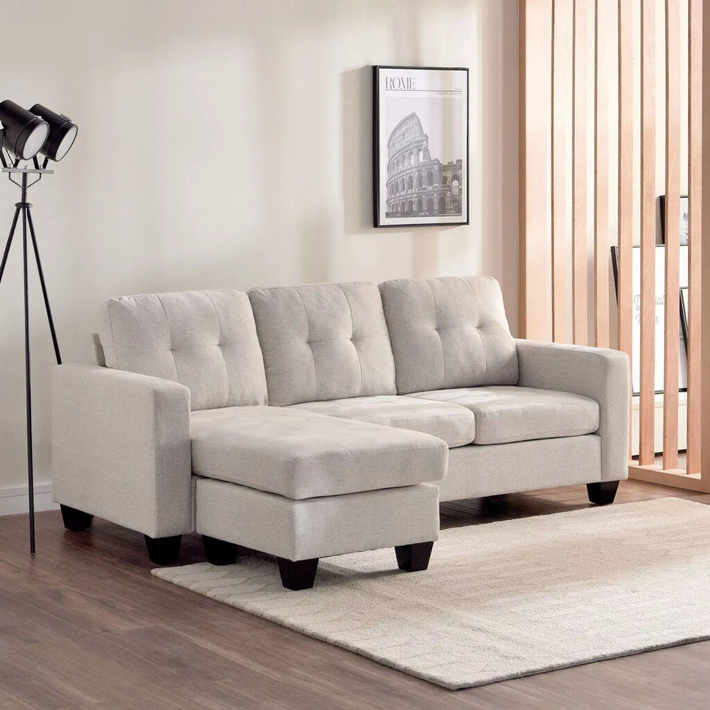 Luna Linen Fabric Convertible Sectional Sofa in Grey