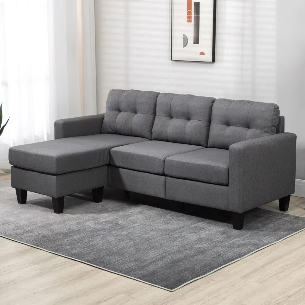 Luna Linen Fabric Convertible Sectional Sofa in Grey