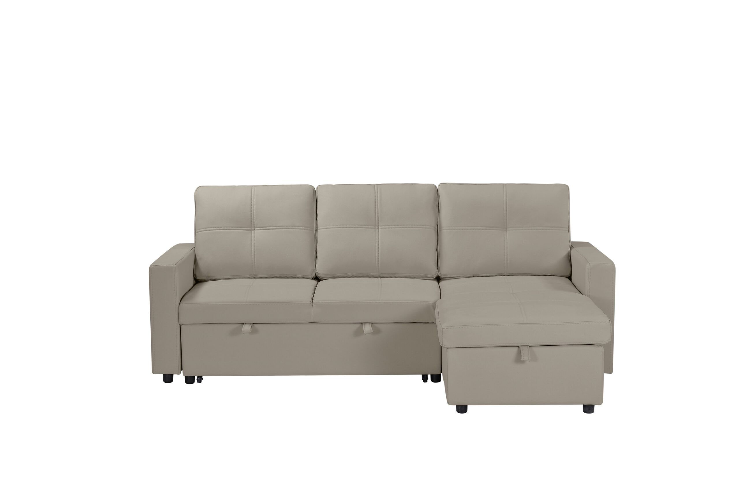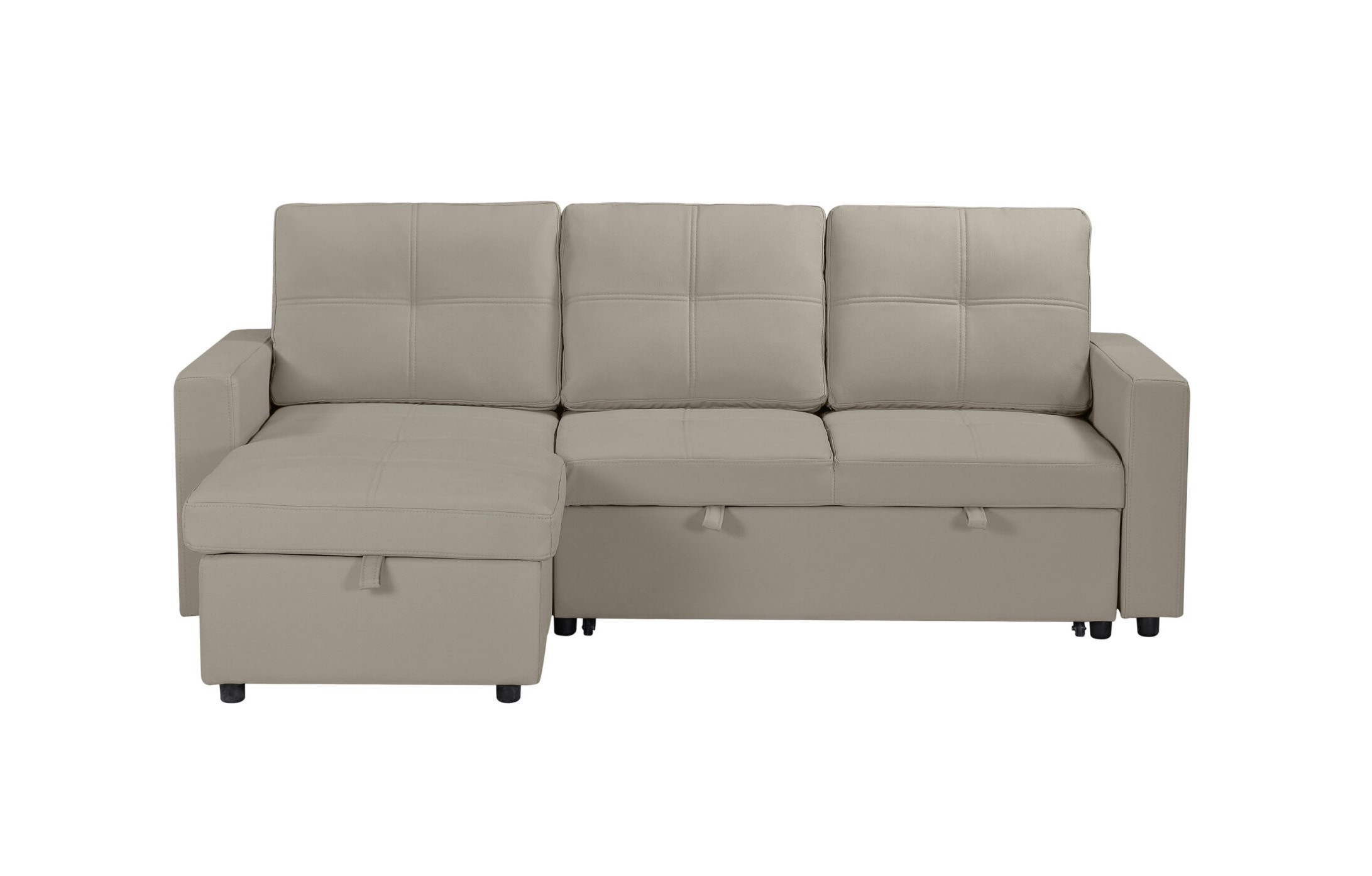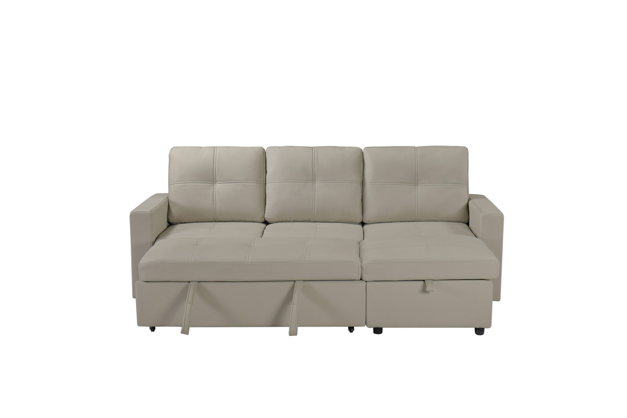Newport Leather Pullout Sofa Bed in Beige with Storage Compartment