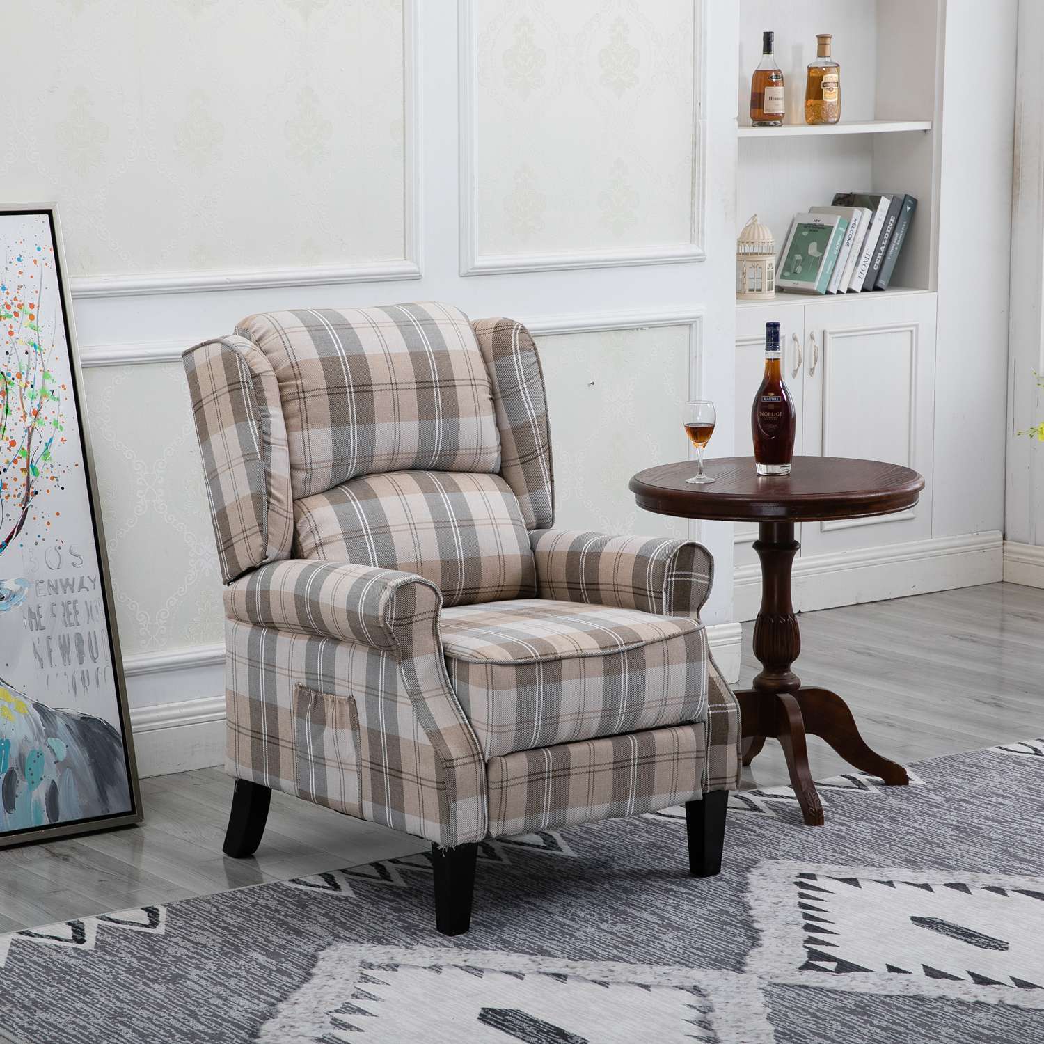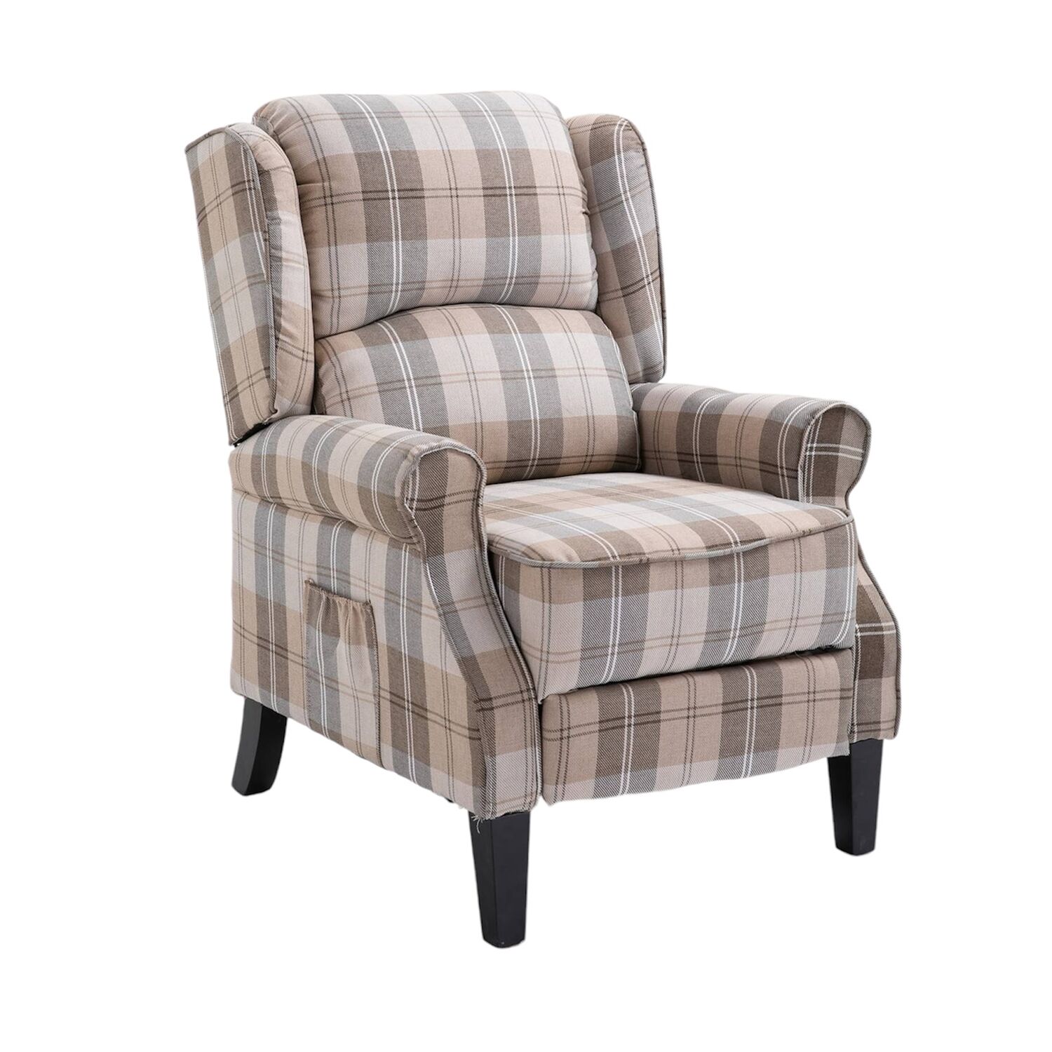 Estonia Pushback Recliner Armchair in Beige Tartan