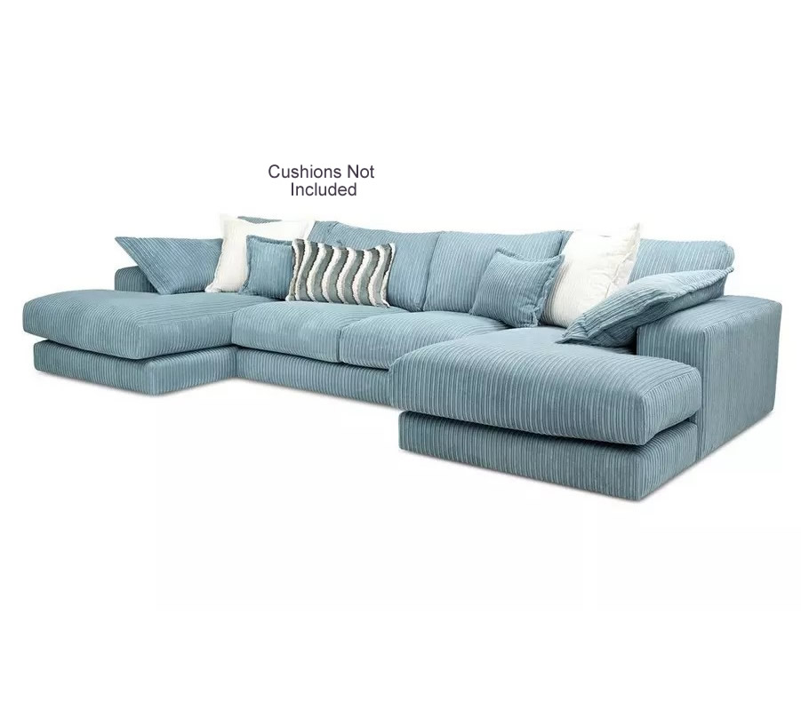 Rest Jumbo Cord Fabric Double Ended Chaise Sofa in Sky Blue