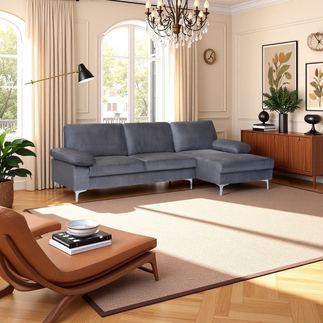 Venosa Velvet 3 Seater L-Shape Sofa in Grey